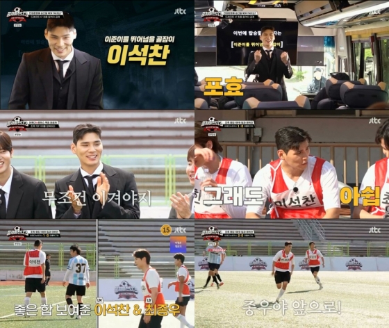 케이플러스의 모델 이석찬이 JTBC '뭉쳐야 찬다3'에 새 멤버로 합류해 인상 깊은 경기력을 보여주었다.