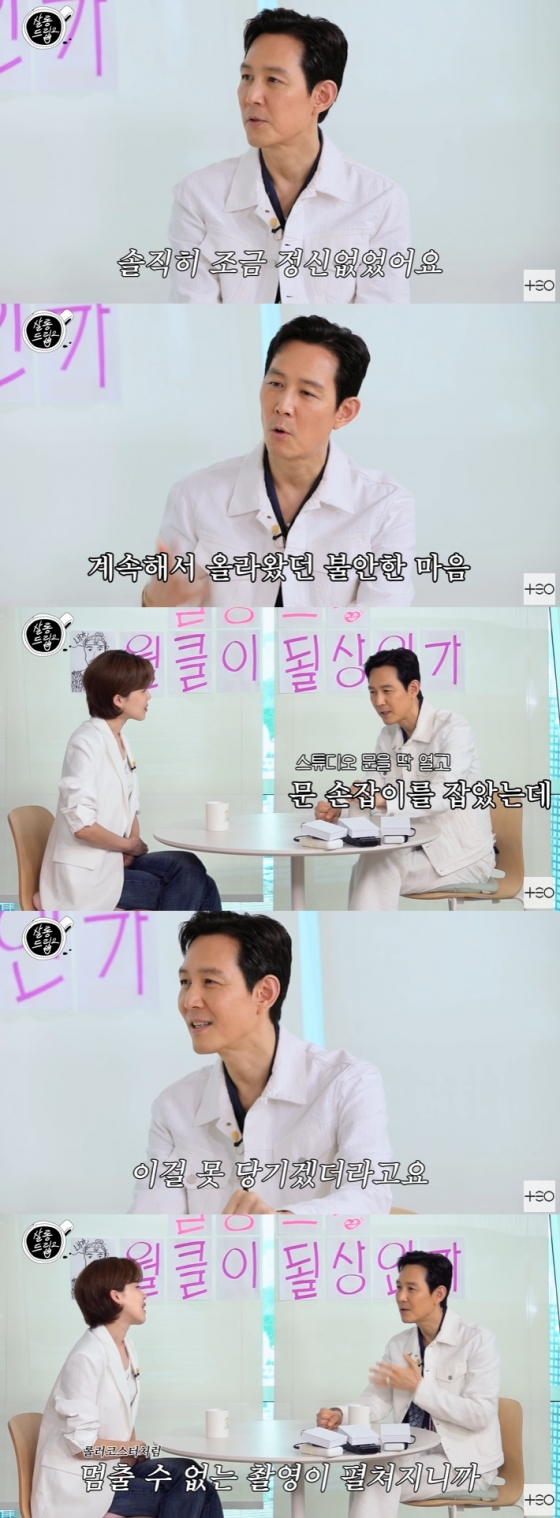 장도연이 첫 촬영 때 어떤 마음이었는지 묻자 이정재는 "사실 찍어야 할 게 많으니까 조금 정신이 없었다. 준비를 많이 했지만 '이게 최선이었을까?'라는 불안한 마음이 계속 들었다"라고 말했다.