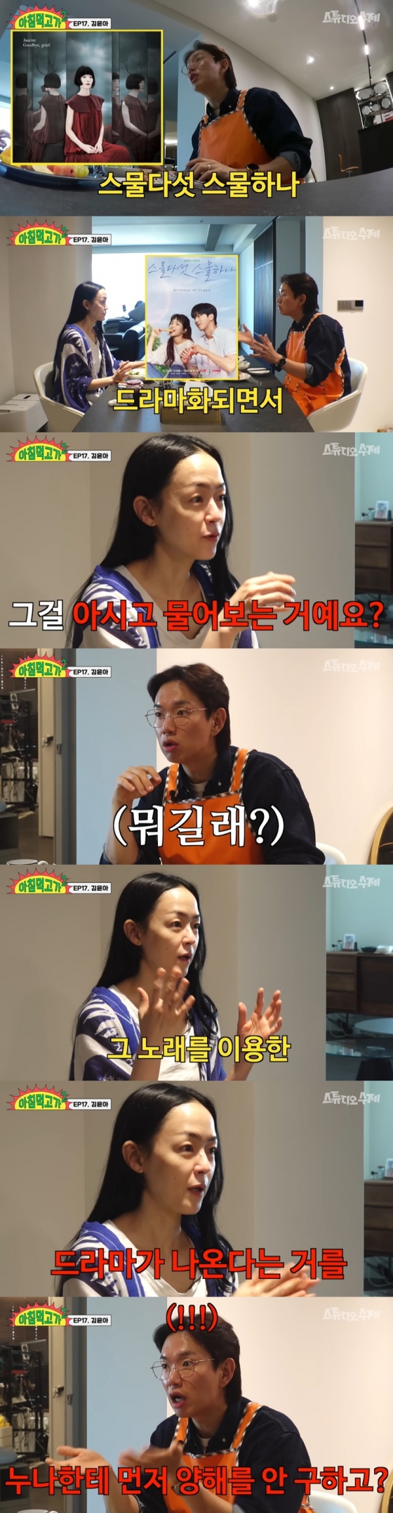 장성규는 김윤아의 저작권료를 물어보다가 "(자우림이) 워낙 명곡이 많지만, '스물다섯 스물하나'가 어떻게 드라마화된 거냐"라고 질문했다.