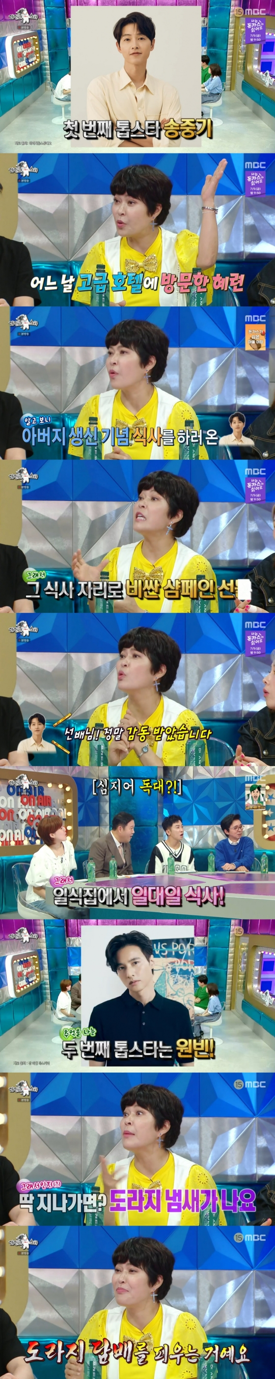 지난 26일 오후 방송된 MBC '라디오스타'에서는 송중기, 원빈과의 강렬한 추억을 고백하는 연예계 데뷔 33년차 조혜련의 모습이 그려졌다.