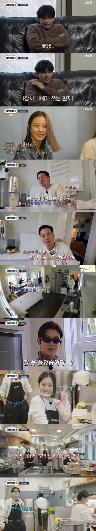 뿐만 아니라 이서진은 "드디어 (최)우식이도 뭔가 책임감을 갖는 때가 왔네. 그동안 그렇게 열심히 안 하고 딴짓하고 거짓말하고. 근데 고민시는 인턴 중에 제일 먼저 나와서 열심히 한다. 지금까지 이런 인턴은 없었다. 인턴 중에 이런 인턴 처음 봤다. 인턴들은 다 우식이 태형(뷔)이 이런 애들인 줄 알았다"라고 뒷담화(?)를 해 웃음을 자아냈다.