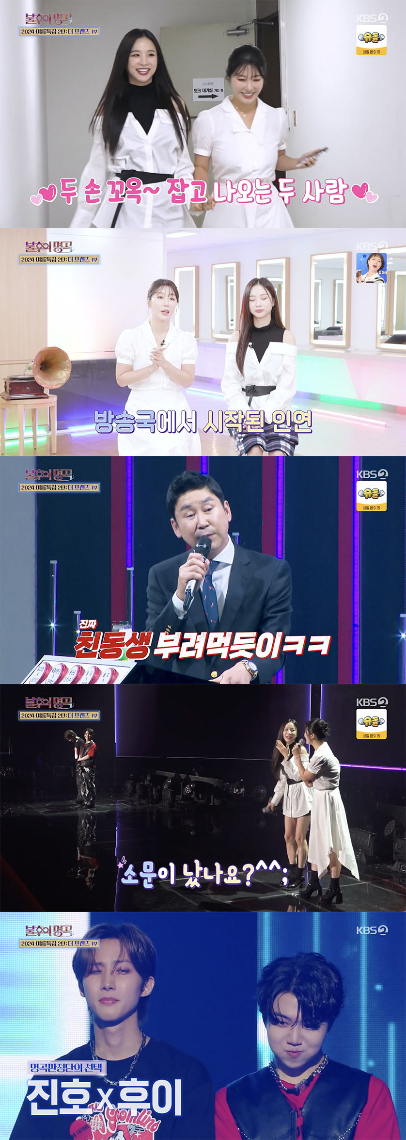 이날 두 사람은 이승철의 '인연'을 선곡해 완벽한 하모니로 무대를 꾸몄다. 무대를 마친 후엔 명곡판정단석에 진호X후이 팀과 함께 올랐다.