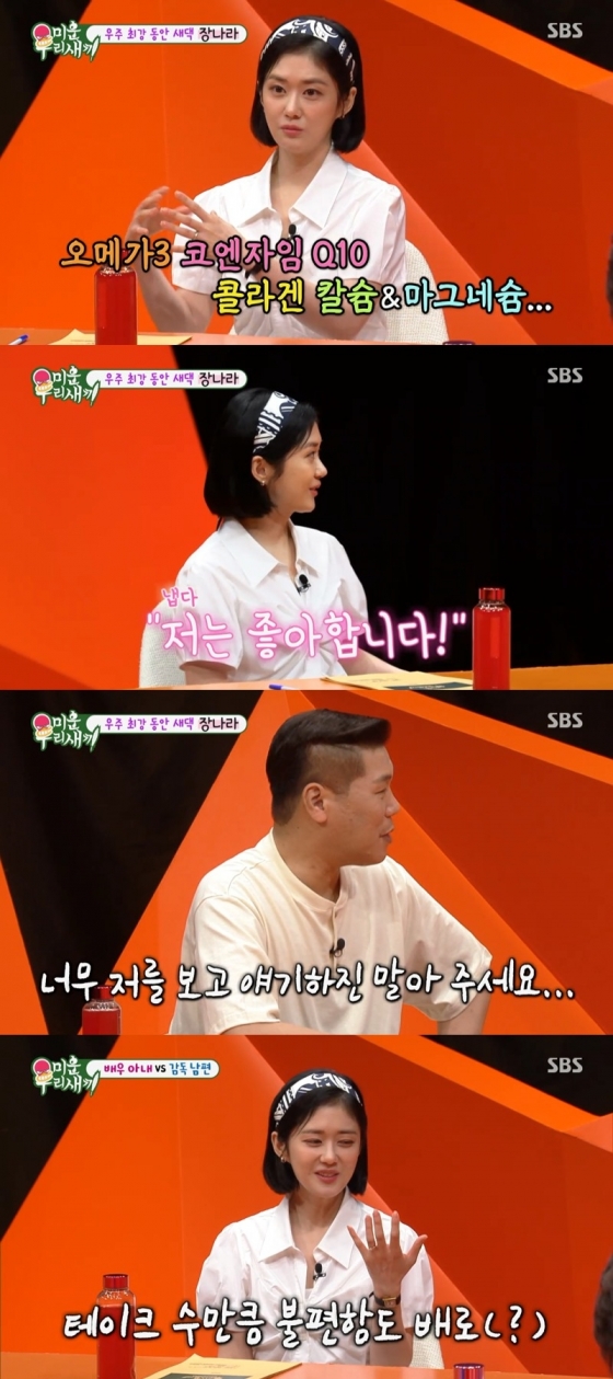 한편 장나라는 "남편과 아직 생리현상을 공개적으로 트지 않았다. 서로 실수하면 바로 '미안해'하고 다른 한 명이 바로 죽은 척한다"라며 신혼 토크로 모두를 흐뭇하게 했다.