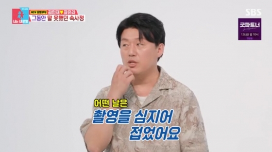 김민재는 "그래서 그냥 제주도에 내려가자고 해서 왔다. 유라 씨가 'YES' 한 날 바로 제주도로 내려갔었다. 제주도에 내려와서 어렸을 때 아르바이트하던 시절처럼 지냈다. 새벽에 아내가 공사 현장에 데려다주기도 했었다"라고 회상했다.