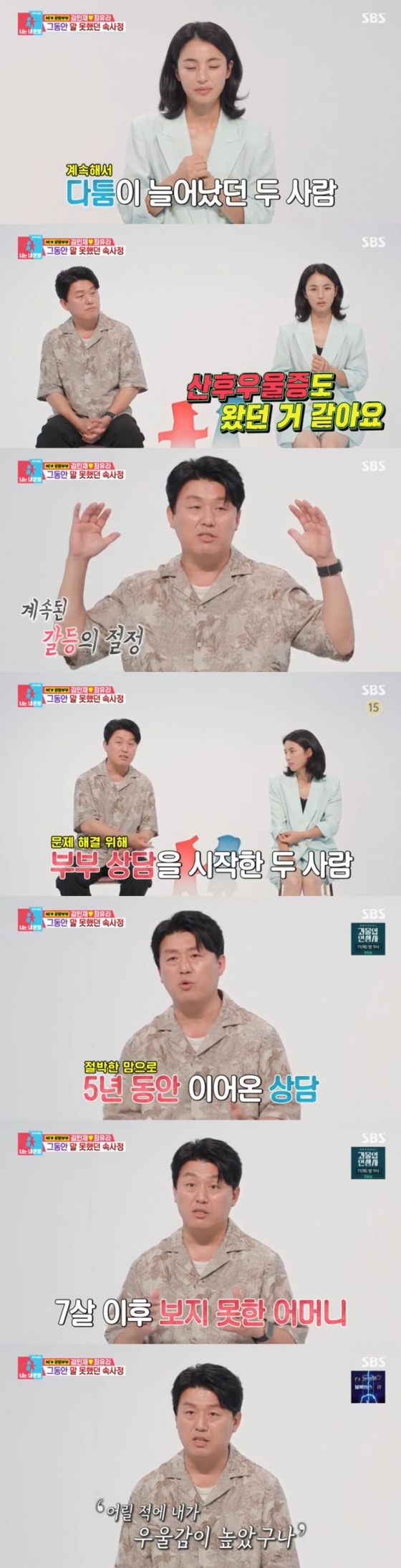 최유라는 "우리도 위기가 있었다. 처음에는 서로 방법을 모른 상태였기 때문에 혼란이 많았다. 문제가 많게 느껴졌었다. 산후우울증도 왔던 것 같다"라고 말했다.