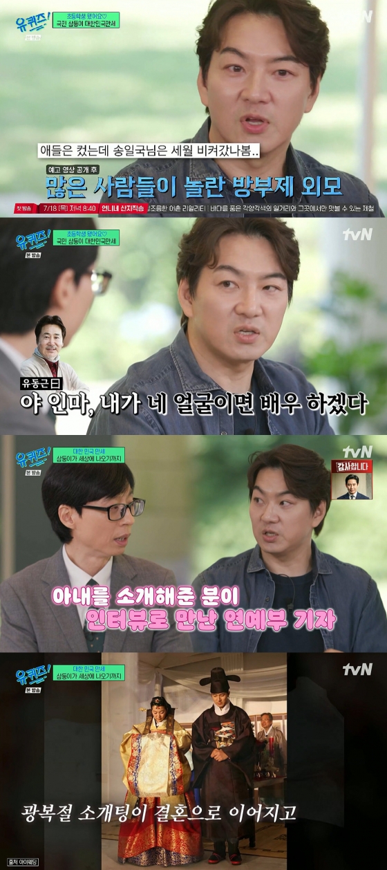 배우 송일국이 판사 아내와 러브스토리를 밝히며 대한, 민국, 만세의 이름을 지은 이유도 설명했다.