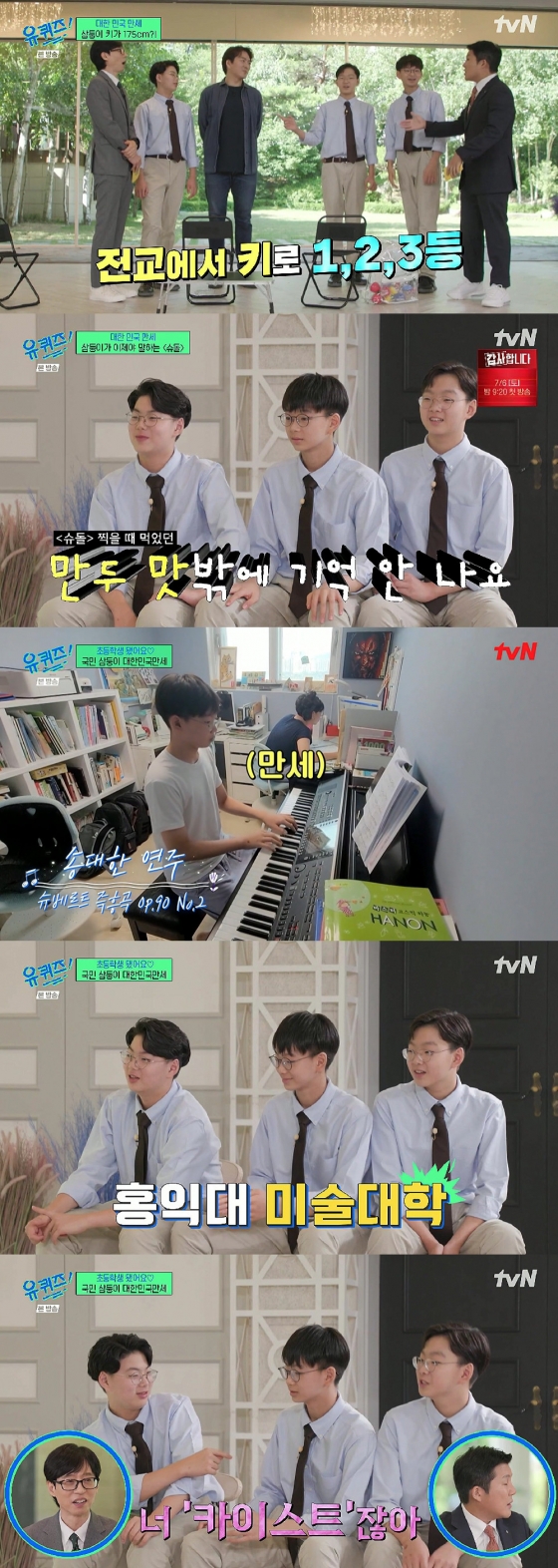 조세호는 대한, 민국, 만세에게 꿈이 있냐고 물었고, 만세는 자신 있게 손을 들어 "홍대(홍익대학교) 진학을 목표로 하고 있다. 미술대학에 들어가는 게 목표다. 주변 사람들이 아버지 따라서 배우 하라고 하는 분들도 많다"고 했고, 민국이는 "저는 아직 없다"고 말했다. 이에 만세가 "넌 카이스트 아니냐"라고 했고, 민국이는 "이게 사회 문제다. 대학 가면 잘될 거라고 생각한다. 진정한 (꿈)이 없다"고 소신을 밝혔다.