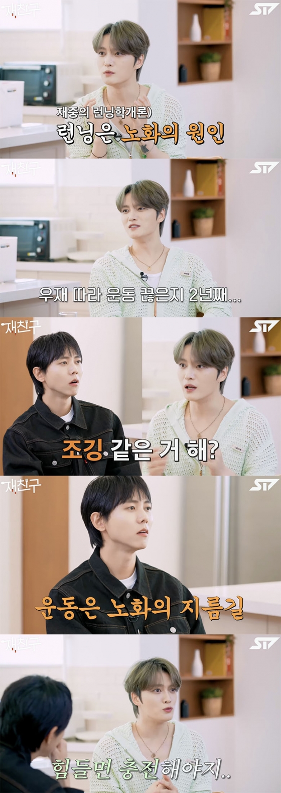 이어 김재중은 주우재에게 평소 조깅을 하는지 물었다. 주우재는 "이걸 안 한다는 표현이 맞나? 그런 게 내 인생에는 아예 없다"라고 답했고, 김재중은 동의의 표시로 주우재에게 하이파이브를 했다.