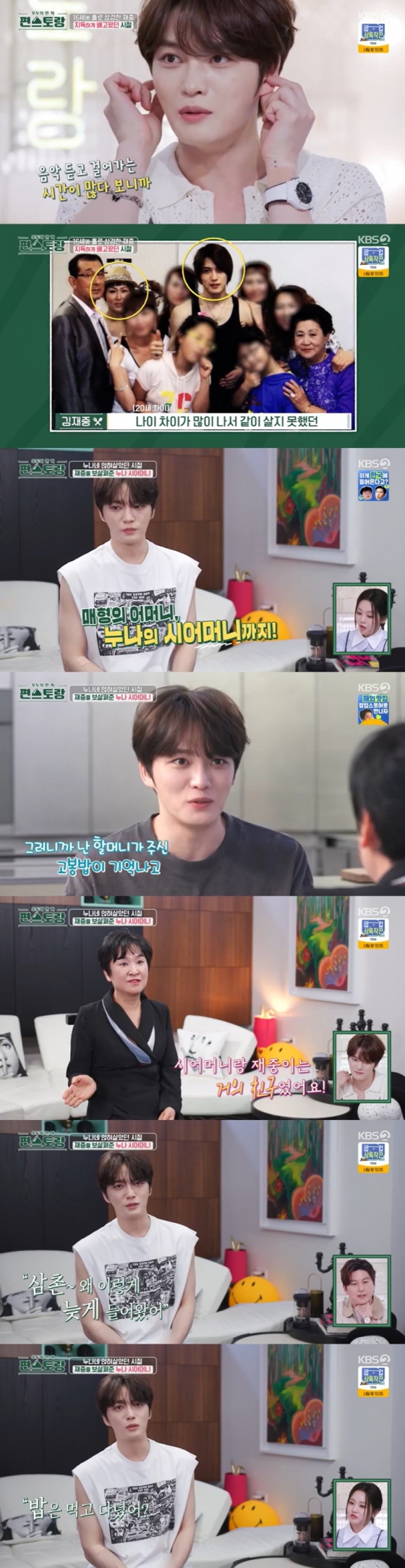 김재중은 "나는 조카들한테 아직도 미안하다. 갈 곳 없고 살 곳 없을 때 누나가 방을 내줬잖아. 그게 벌써 20년 전이다"라고 누나와의 추억을 언급했다.