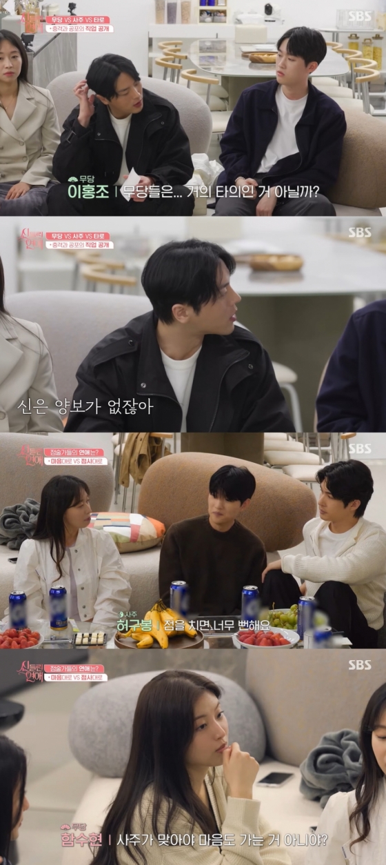 이런 도전적인 기획은 어떻게 탄생했을까. '신들린 연애' 김재원 CP는 "우린 지상파고 우려 섞인 시선이 많았다. 사실은 그래서 내가 많이 우긴 부분도 많았다"며 "인간의 역사 속 항상 있는 역술인이다. 미래를 보고 싶은 건 인간의 본능이다. 그리고 아마 그분들도 그렇다고 생각할 거 같고, 딜레마를 겪고 있다고 생각한다. 금기에 접근할 게 아니라 하나의 인간으로서 이들을 어떻게 보여줄까 싶었다. 원래 OTT로 하려고 했으나 (SBS가) 우리 기획 의도에 공감을 해줘서 파격적으로 가보자는 분위기가 있어서 시작하게 됐다"고 말했다.