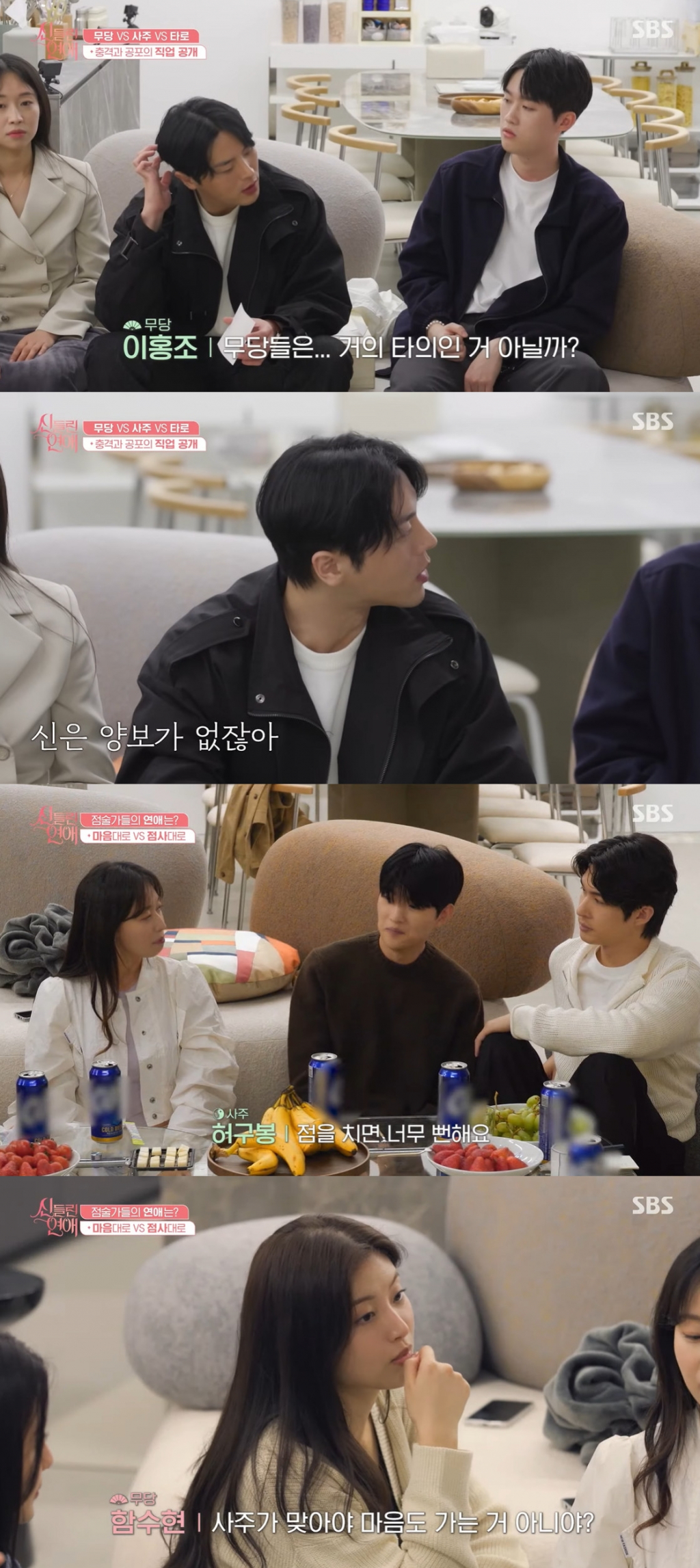 그래서인지 예능부도 아닌 시사교양부가 연애 리얼리티 프로그램을 론칭했다. 바로 SBS '신들린 연애'다. 총 6부작으로 구성된 '신들린 연애'는 용한 점술가 남녀 8인의 촉과 감이 난무하는 연애 리얼리티. 퇴귀사, 무당 뿐만 아니라 타로 심리 상담가, 역술가 등이 출연한다.