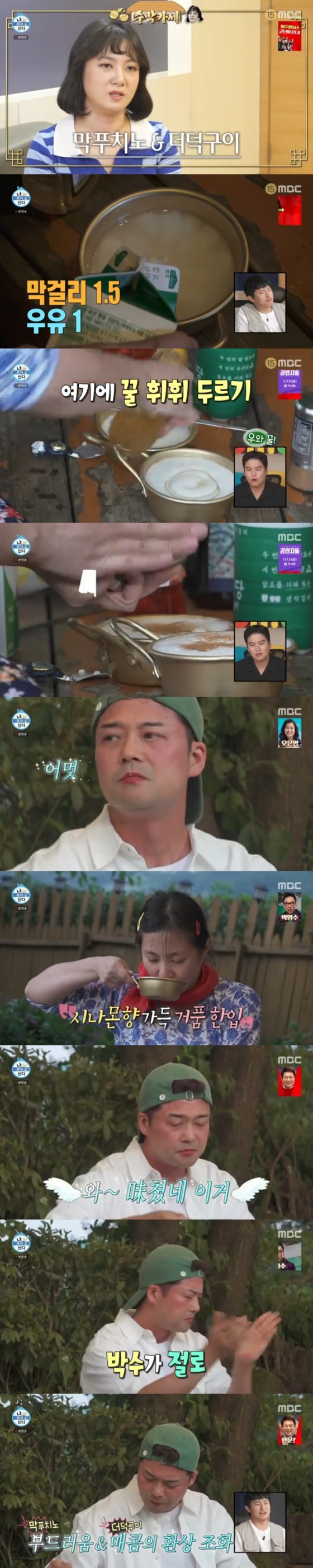박나래는 더덕구이와 잘 어울리는 술로 막걸리와 우유를 섞고 꿀을 넣은 후 거품을 낸 다음 시나몬 가루로 장식한 일명 '막푸치노'였다. 자신만만해하는 박나래에게 전현무는 "아까 술보다 이게 더 좋다. 완전 내 스타일이다. 이건 메뉴로 나올 것 같다"라고 극찬했다.