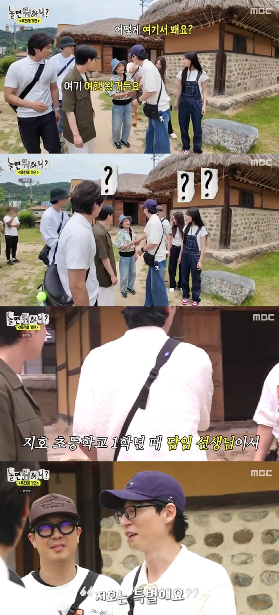 이날 유재석은 정지용 시인 생가를 찾아 관광을 이어가던 중 아들 지호의 초등학교 담임선생님과 만났다.