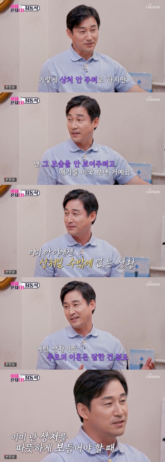 최동석은 "사실 이혼이라는 게 남녀가 사랑하다 헤어질 수 있지 않냐. 아이들은 헤어질 수 있는 존재가 아니다"라고 했고, 조윤희도 "공감된다. 저도 이혼할 때 제일 중요했던 게 아이에게 상처 주지 않는 거였다"고 털어놨다.