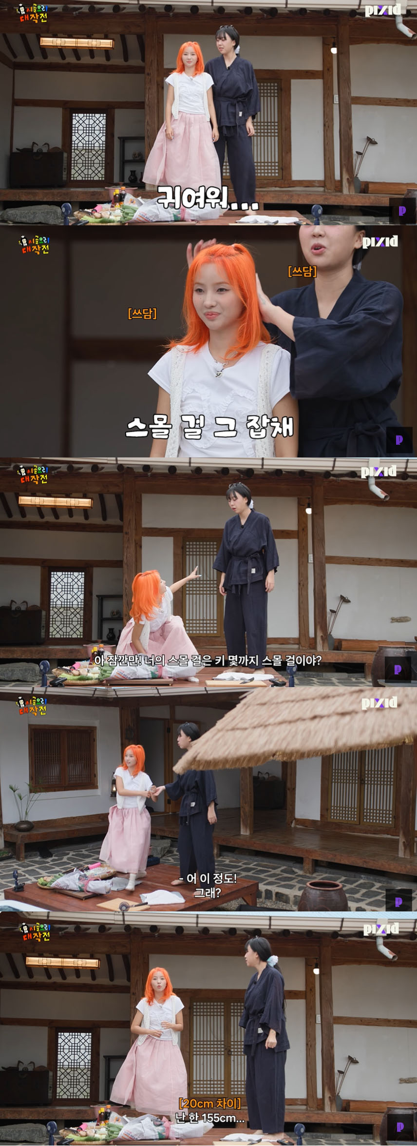 전소연이 당황하며 "너에게 스몰 걸은 키 몇 까지가 스몰 걸인 거냐"라고 묻자 이영지는 "딱 언니 정도다"라며 전소연 옆에 나란히 섰다.