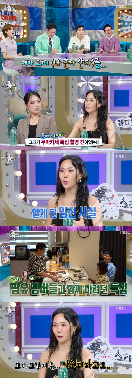 그는 "제가 '나 혼자 산다'의 무지개 회원이었다. 당시 프로그램에 한창 스며들 때쯤이었다. 제가 먹는 걸 너무 좋아해서 (전) 현무 오빠의 '무마카세'에 저도 가기로 한 상황이었고, 스케줄도 다 잡힌 상황에서 아기가 생긴 걸 알게 됐다"라며 "제가 솔직하게 임신 소식을 작가님한테 말씀드리고 빠지게 됐다"라고 하차 과정에 대해 털어놨다.