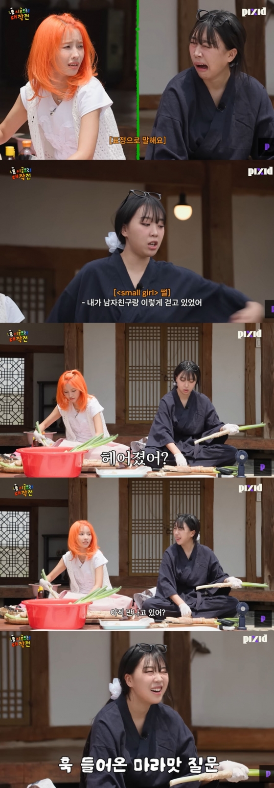 이후, 해당 이야기를 들은 전소연은 이영지에게 "'스몰 걸' 가사 속 남자친구랑은 헤어졌어? 아직 만나고 있어?"라고 마라 맛 질문을 던졌다. 이에 이영지는 당황한 표정을 지으며 노코멘트로 일관했고, 이영지의 애매한 표정을 읽은 전소연은 자연스럽게 해당 주제를 넘어가 보는 이들의 웃음을 자아냈다.