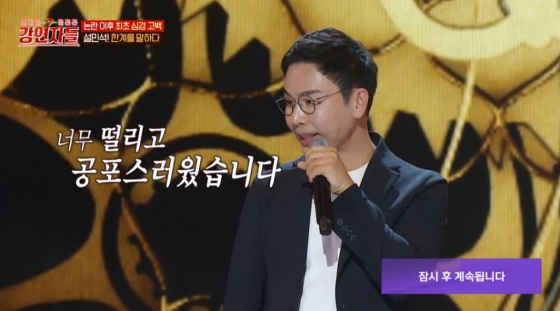 설민석은 자신의 차례가 되자 무대 위로 올라 관객들에게 첫 인사를 건넸다. 약 3년 만에 무대에 섰기 때문에 긴장했을 터. 그는 "나는 이 자리에 서기까지 너무 떨리고 공포스러웠다"라고 말문을 열었다. 설민석의 강연은 다음 회차에 공개된다.