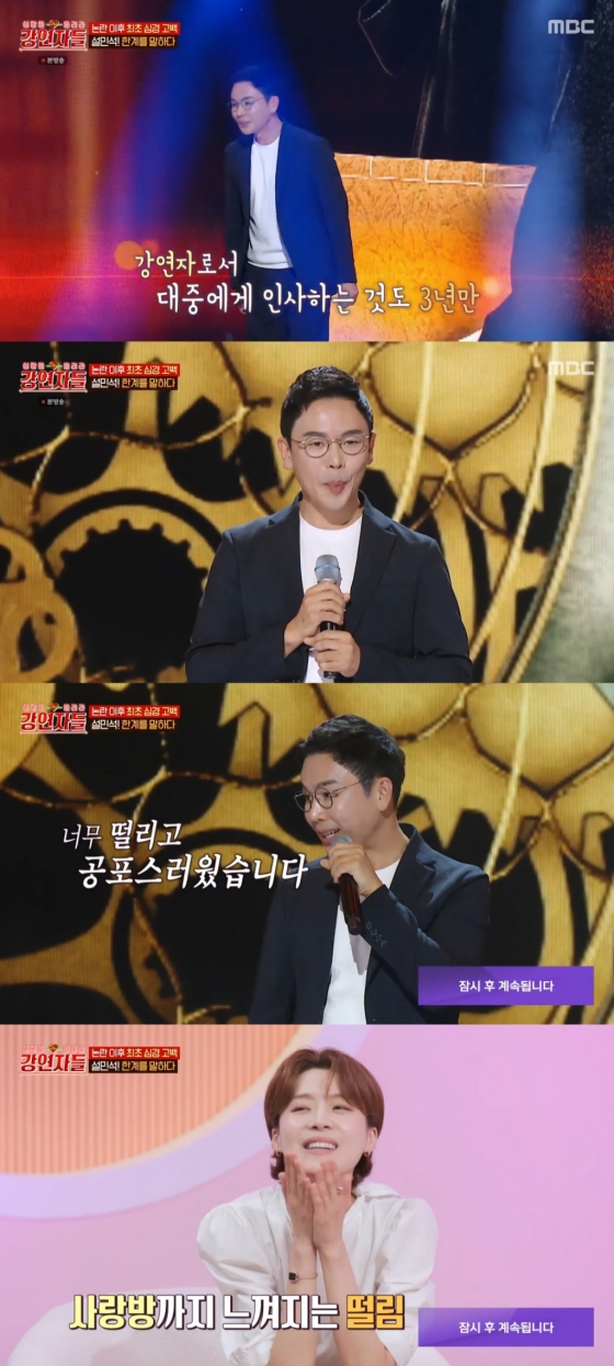 설민석은 '강연자들'을 통해 논문 표절 논란 이후 약 4년 만에 지상파 프로그램에 복귀하게 됐다. 때문에 박명수는 그의 근황이 궁금해 질문을 던졌다. 설민석은 "오늘 어떤 강연을 준비하셨냐. 오랫동안 못 뵙다가 나오니까 궁금해서 그렇다"라는 박명수의 물음에 당황한 눈빛과 함께 "확실한 거는 어디에서도 하지 못한 얘기를 최초로 말하겠다. 다 열겠다"라고 예고했다.