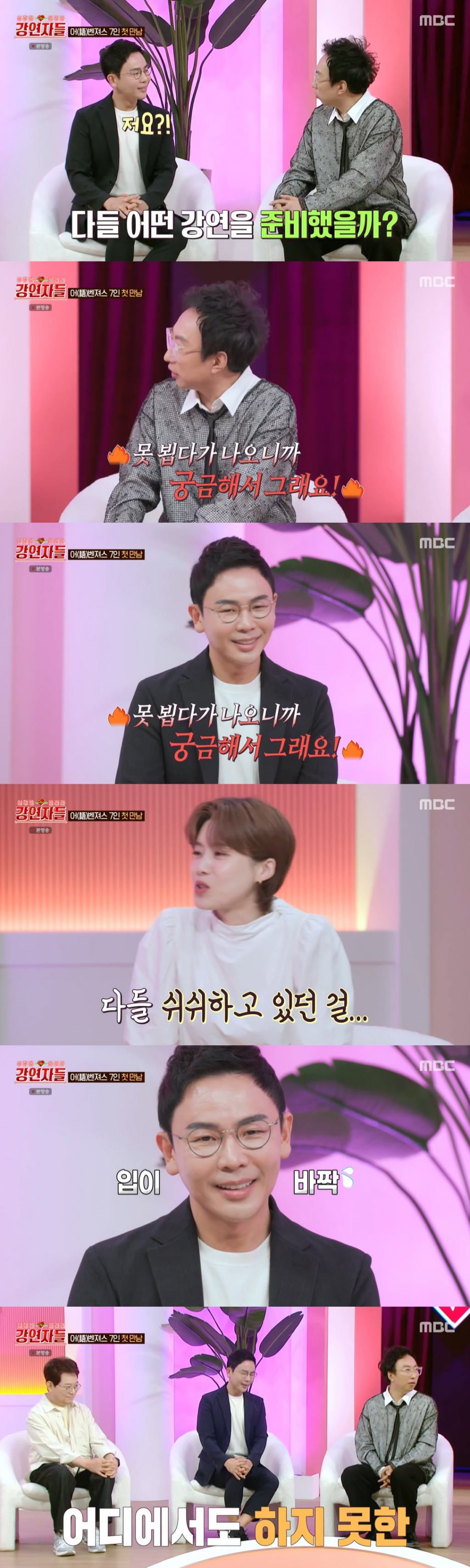 12일 오후 방송된 MBC '심장을 울려라 강연자들'(이하 '강연자들')에서는 '어(語)벤져스'라는 수식어에 걸맞은 불꽃 튀는 견제와 강연 경쟁을 하는 강연 레전드 오은영, 김성근, 한문철, 금강스님, 설민석, 박명수, 김영미의 모습이 그려졌다.