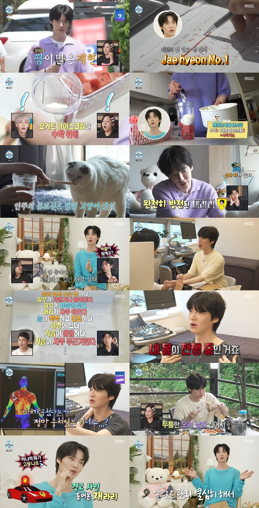 안재현은 과거 요거트 아이스크림 가게서 아르바이트를 했던 실력을 뽐내며 히든 메뉴였던 '재수박(재현+수박) 스무디'를 뚝딱 만들었다. 다이어트 후 적정 체중을 유지 중인 반려묘 '안주'에게는 아이스 간식을, 자신은 '재수박 스무디'를 먹으며 열기를 식혔다.