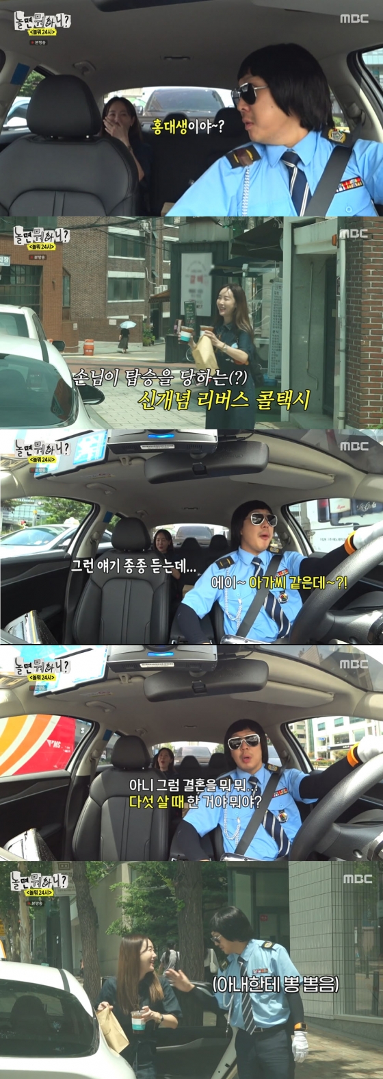 하하와 별은 기사와 손님으로 상황극을 연출했다. 하하가 "뭐 하시는 분이에요? 보니까 아가씨 같은데 홍대생이야?"라고 하자 별은 "아가씨 아니에요. 그런 얘기 종종 듣는데 애가 셋이에요. 아들, 아들, 딸 하나 키우고 있다"라고 답했다. 이에 하하는 "에이 어른들한테 장난치는 거 아닙니다. 결혼을 다섯 살 때 한 거냐"라며 너스레를 떨어 보는 이들의 웃음을 자아냈다.