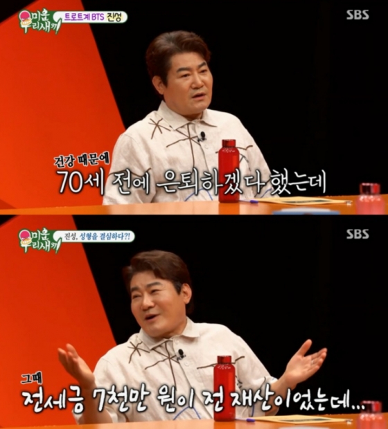 한편 진성은 "제가 인상이 강하다는 소리를 자주 들어서 15년 전 성형외과 상담을 받았다"며 "견적이 3000만 원이 나왔는데 당시 전세금 7000만 원이 전 재산이었다. 그냥 팔자대로 살기로 했다"고 에피소드를 고백했다.