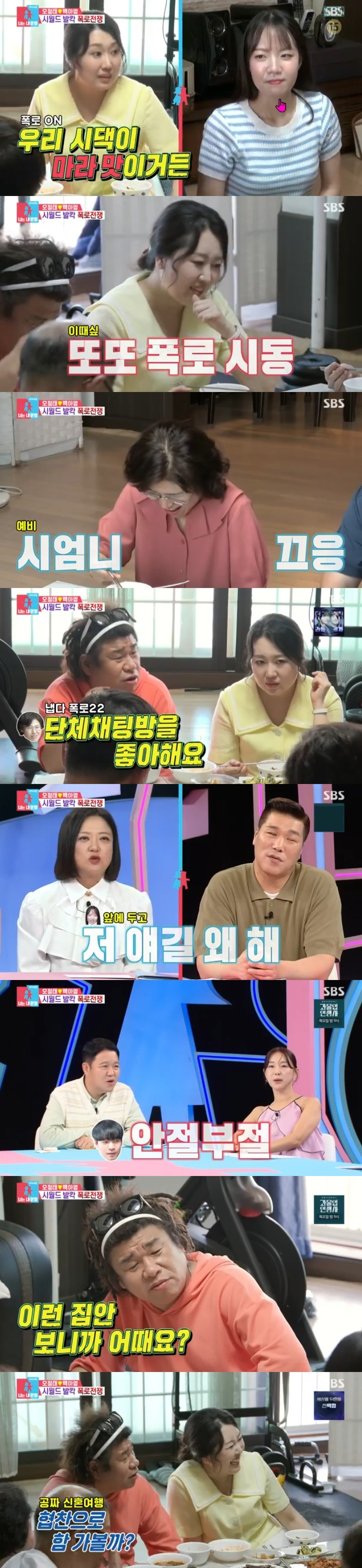 또 "이런 집안 분위기 어떠냐"는 오정태의 질문에 예비 며느리는 마지못해 "부럽다"라고 대답했다. 이에 오정태는 "그럼 바로 단체방으로 초대하겠다"리고 말했고, 예비 며느리는 당혹감을 감추지 못했다.