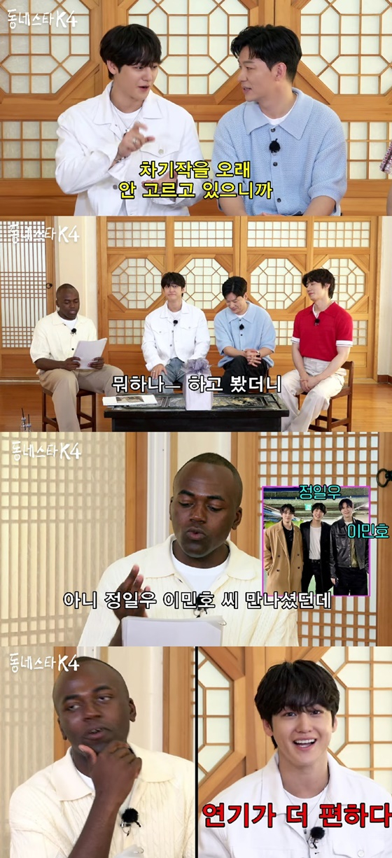 그러자 조나단은 "공백기에 뭐 하고 있나 봤더니 정일우, 이민호를 만났더라"라고 언급했다. 김범은 "제일 친구들이어서 정기적으로 본다. 일우 형 공연 때문에 만났었다"고 했다.