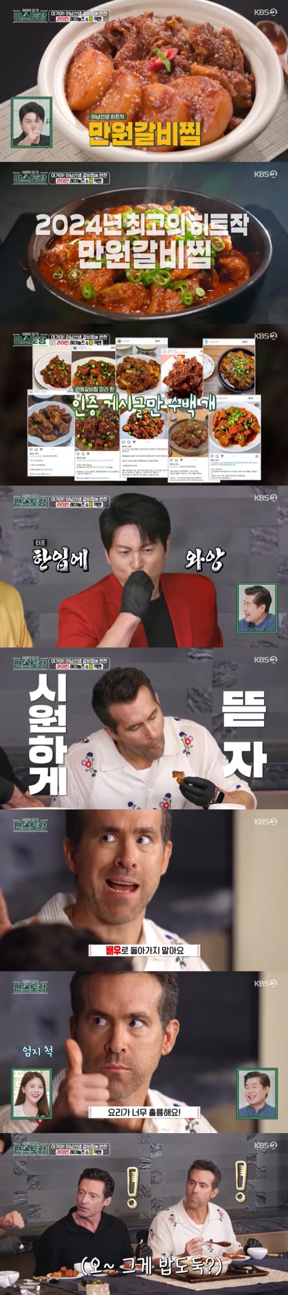 류수영은 두 배우를 위해 화제의 단돈 만원으로 만들 수 있는 '만원 갈비찜'을 대접했다. 라이언 레이놀즈와 휴 잭맨은 새빨간 음식이 등장하자 다소 놀랐다.