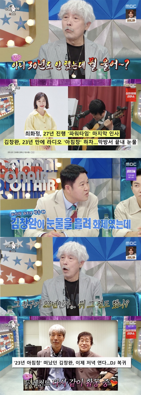 이날 MC 김구라는 최근 51년 만에 MBC 라디오 '싱글벙글 쇼'가 폐지된 소식과 최화정이 27년 진행한 SBS 라디오 '파워 타임'에서, 김창완이 23년 간 진행한 '아름다운 이 아침 김창완입니다'에서 하차한 것에 언급하며 아쉬움을 표했다. 그러면서 "마지막 라디오 방송에서 김창완 씨가 눈물 흘린 영상을 봤냐"라고 질문했다.