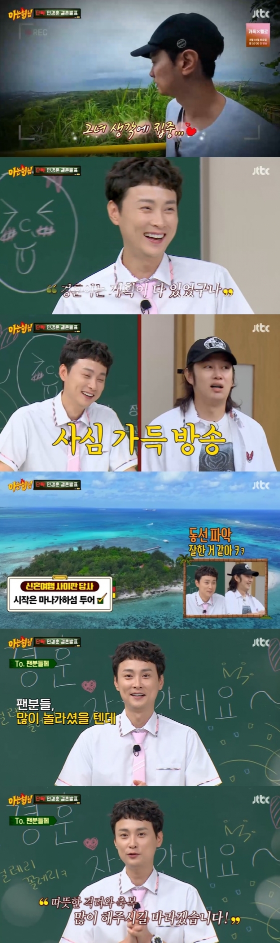 그는 "원래 우리가 사이판 갔을 때 (결혼 소식을) 얘기하려고 했는데 참았다. 촬영에 집중하려고"라고 말했다. 당시 이수근은 민경훈을 향해 "이런 애가 갑자기 장가 가"라고 말해 예언 같은 장면을 만든 바 있다.