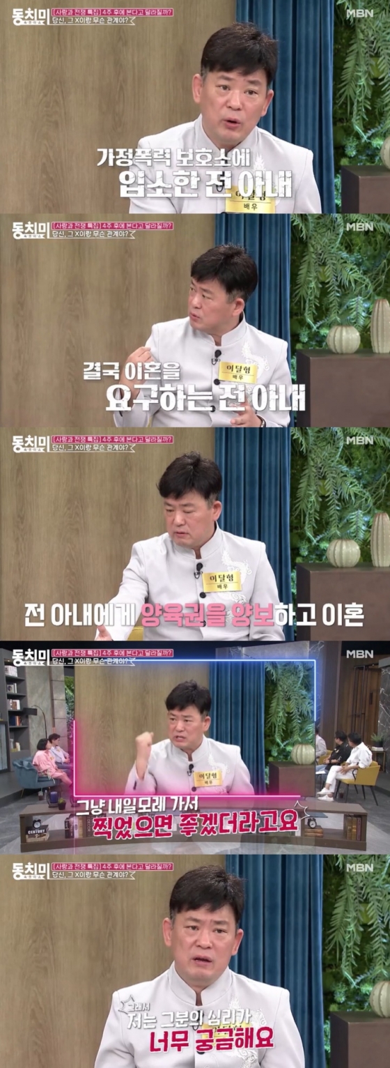 그는 "장인어른에게 전화했더니 '여기 왔길래 쫓아냈다'고 했다. 이후에 아내에게 전화가 와서 받았더니 가정폭력 보호소에 입소했더라. 나를 폭력 남편으로 신고했고 나한테 와서 사인을 하라고 하더라. 결국 이혼을 요구하길래 나는 너무 시원했다. 홧병이 생기겠더라. 양육권만 달라고 해서 그러자고 하고 이혼했다. (이혼 조정기간) 4주가 지옥 같았다. 그냥 내일모레 가서 빨리 도장 찍었으면 좋겠더라. 돌아버릴 것 같았다"고 전했다.