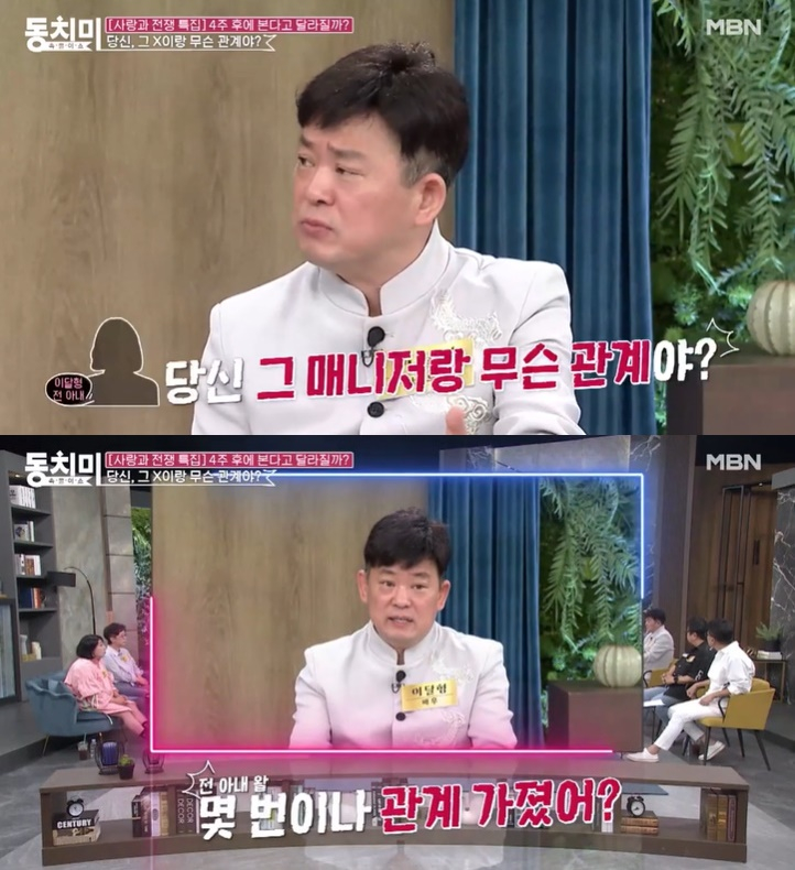이달형은 "전 아내랑은 신혼여행 다음날부터 문제였다. 집에 친한 여배우가 결혼 축하 선물을 보냈는데 그걸 보고 '이 여자랑 무슨 관계냐'라고 하더라. '결혼식 못 와서 선물을 보냈다'고 해명했다. 그날 처가댁에 갔다가 집 앞까지 가는 길 내내 내가 사과했고 선물을 돌려보냈다"라고 말했다.