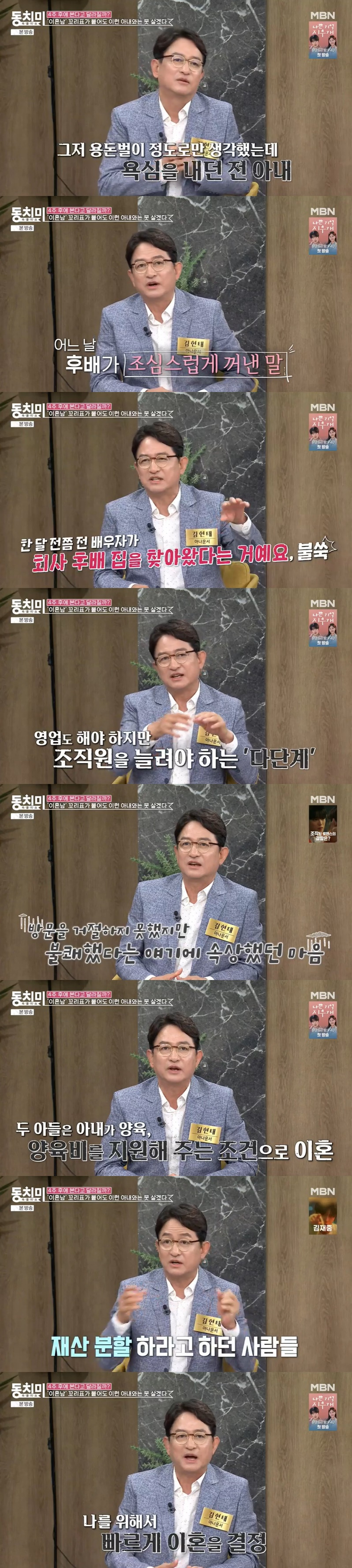 아나운서 김현태가 다단계에 빠진 아내와 이혼한 사연을 밝혔다.