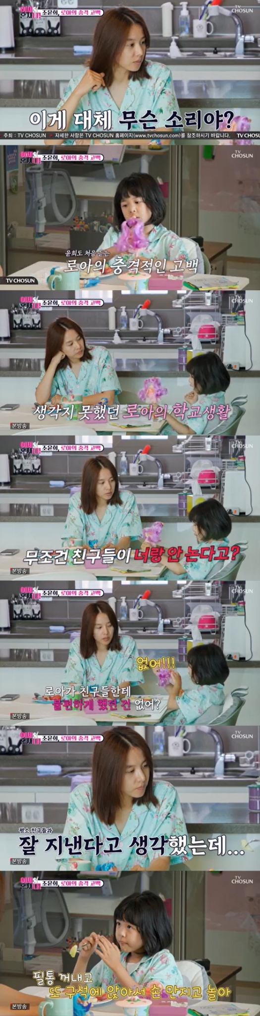 '이제 혼자다'에서 배우 조윤희가 딸 로아의 학교생활을 전해 듣고 충격을 받았다.