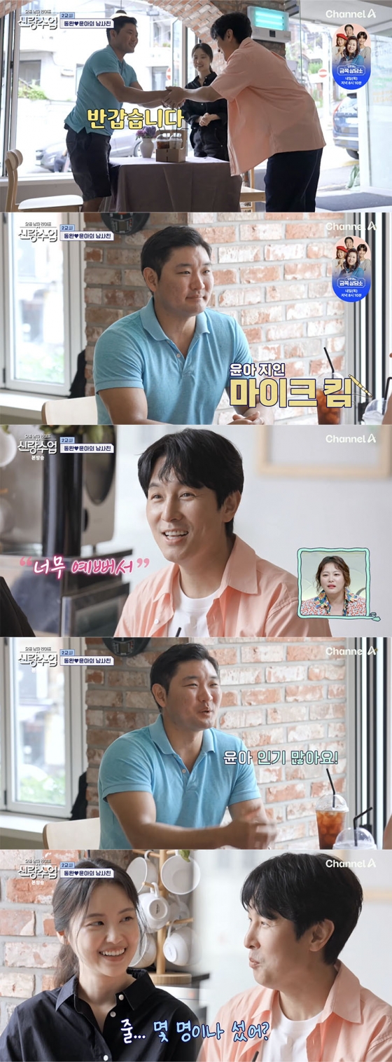 이어 김동완은 두 사람의 인연을 물었다. 서윤아는 "우리가 같이 아는 김훈이 셰프님이 미국에서 한식당을 하신다. 그분이 하는 미식가 모임에서 알게 됐다"라고 설명했다. 이를 들은 김동완은 '남사친'을 향해 "우리 윤아 (처음) 봤을 때 깜짝 놀랐죠? 너무 예뻐서?"라며 팔불출 모습을 보여 서윤아를 당황케 했다.