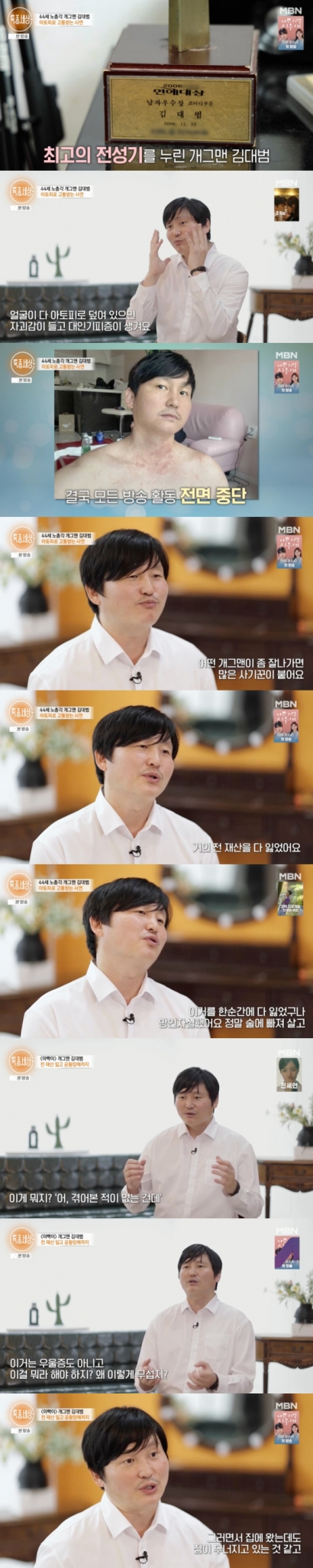 이날 김대범은 전성기를 누리던 중 돌연 방송 활동을 중단한 이유에 대해 "아토피가 굉장히 심각했다. 얼굴까지 다 덮은 상태였는데,자괴감이 들고 대인기피증이 생겼다"고 밝혔다.