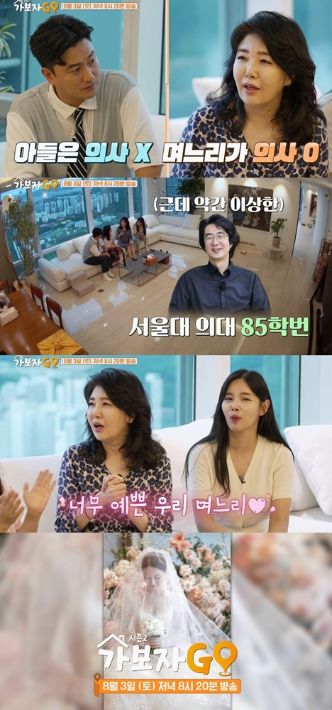 이어 그녀는 "남편이 서울대 의대 85학번인데, 거기서 약간 이상한 남자로 통했다. 일명 '모지리'"라며 "그런데 같은 모지리 미남이 한 명 더 있었고, 둘이 친구다. 며느리가 그 친구의 딸이다"라고 전했다. 특히 "사돈이 9년 전, 며느리가 본과에 들어가던 날 사진을 찍어서 보내왔다. 그런데 그 사진을 보고 마음에 쏙 들었다. 인상 좋고, 착하고 현명해 보였다"라며 '며느리 바보'의 면모를 보였다.