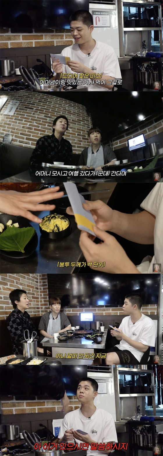 정말 마지막 이별을 앞두고, 홍진경은 그리에 봉투를 하나 건넸다. 그러면서 "너 어머니 모시고 여행 갔다가 군대 간다며? 어머님이랑 맛있는 거 사 먹어. 얼마 안 돼"라고 덧붙였다. 최소 백 단위는 넘어 보이는 두둑한 봉투 두께에 그리가 "아니, 얼마 안 되긴. 두둑한데"라며 매우 놀랐다. 그러면서 이전의 장난을 모두 용서한다는 듯 "이거 있으시면 말씀하시지"라고 해 보는 이들의 웃음을 자아냈다.