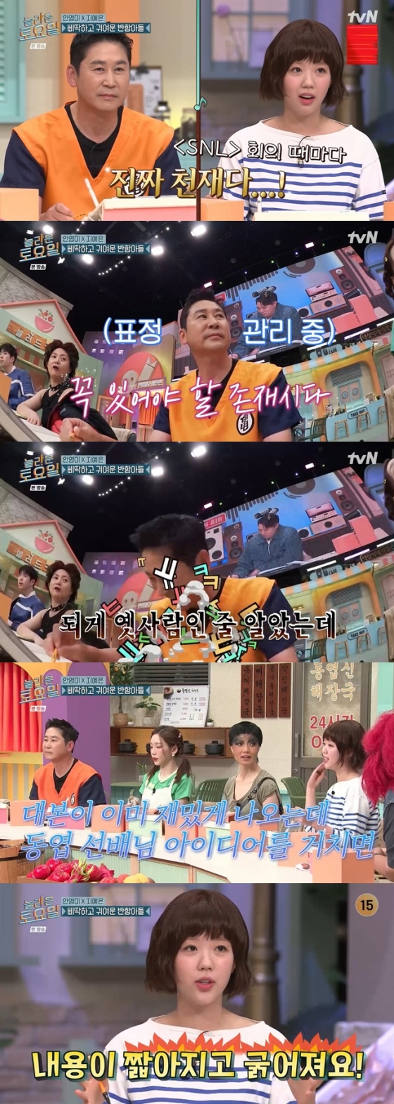 3일 오후 방송된 tvN 예능프로그램 '놀라운 토요일'은 '토요일은 삐딱하게'라는 주제로 꾸며져 안영미와 지예은이 출연했다.