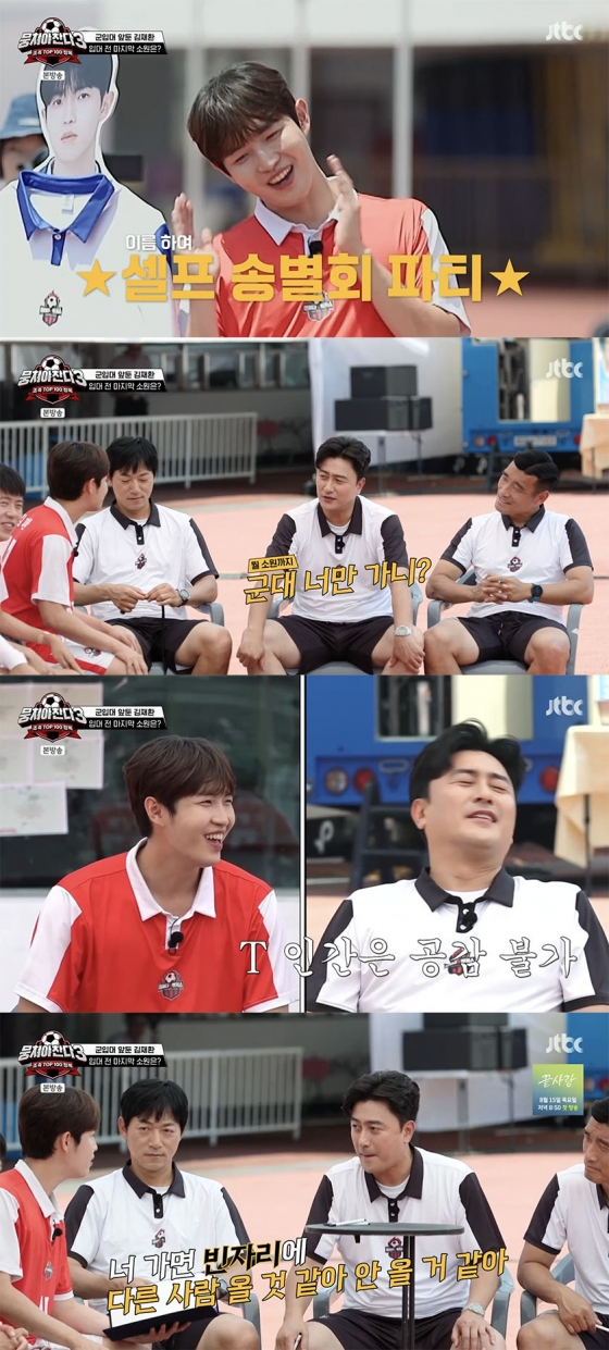4일 오후 방송된 JTBC '뭉쳐야 찬다3' 42회에서는 입대를 앞둔 뉴벤져스 김재환이 셀프 송별회를 준비했다.