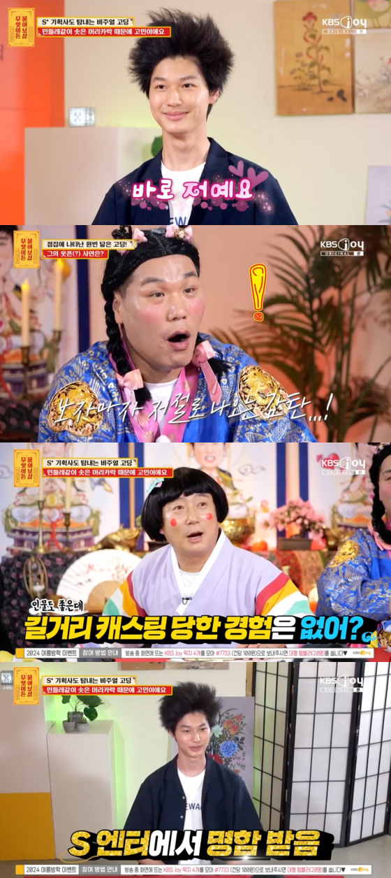 이날 17세 사연자는 "특이한 유전자를 갖고 있다. 심한 악성 곱슬"이라며 쓰고 있던 모자를 벗었다. 위로 솟은 머리를 본 이수근은 "배우 원빈을 닮았다. 머리는 드래곤 볼 아니냐"고 깜짝 놀랐다.