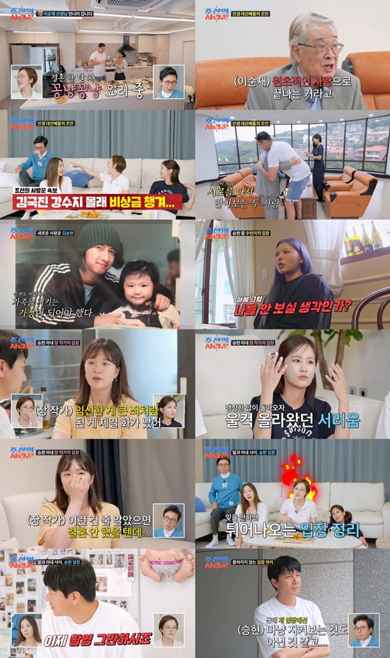 장정윤은 제작진과의 인터뷰에서 "결혼하고 모든 게 다 행복했는데, '이런 건 줄 알았으면 결혼 안 했을 텐데'라고 처음으로 후회했다"며 눈물을 흘렸다. 계속해서 김승현이 장정윤 앞에서 딸과 자신의 입장만 대변하자 '사랑꾼'들의 원성도 폭발했다. 강수지는 "승현 씨가 이 상황을 모른다"며 고개를 저었다. 결국 김승현은 "내가 두 사람이 만날 수 있는 자리를 마련하겠다"고 했지만, 장정윤은 "선배(김승현)가 중간에서 잘하고 있는 것 같지 않다. 오해가 더 쌓일 것 같다"며 "그냥 이야기를 들었으면 좋겠다. 해결하려 하지 말고..."라고 이를 거절했다. 이에 김승현도 "이제 촬영 그만하시죠"라며 자리를 벗어나는 돌발 상황이 발생했다.