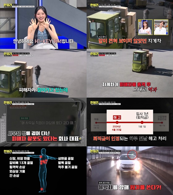 지난 6일 방송된 JTBC 교통 공익 버라이어티 '한문철의 블랙박스 리뷰'(이하 '한블리')에서는 4t에 육박하는 지게차가 30대 여직원을 역과하는 충격적인 사고 영상을 공개했다.