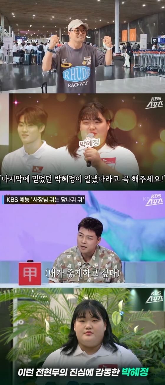 전현무는 앞서 '사장님 귀는 당나귀 귀'를 통해 여자 역도 국가대표 선수들과 친분을 쌓았고, 비인기 종목의 설움을 토로하는 박혜정에게 "내가 역도 중계에 참여해 도움을 주겠다"고 약속했다. 이 약속을 지킨 전현무는 '스마일 역사'로 불리는 이배영 해설위원과 파리올림픽 역도 중계에서 합을 맞춘다.