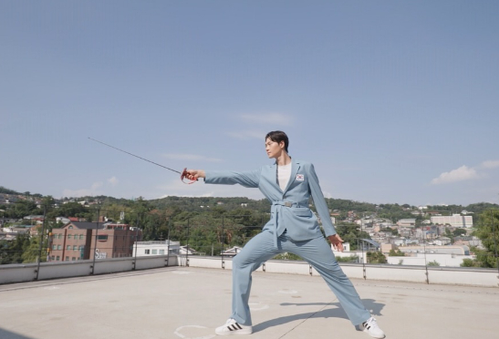 사진 속 오상욱은 2024 파리올림픽 대한민국 대표팀 단복을 입고 펜싱 포즈를 선보이고 있으며 키 192cm에 달하는 훤칠한 기럭지와 패션모델 못지않은 비주얼로 감탄을 자아내고 있다.