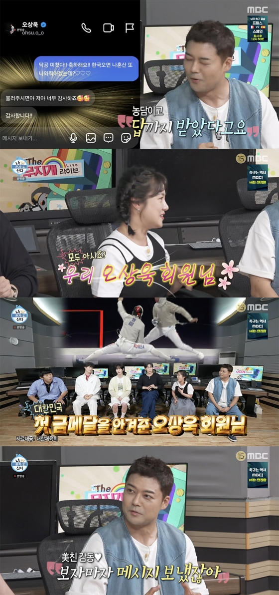 이날 박나래는 2024 파리 올림픽 중계 여파로 2주간 결방했던 것을 이야기 하며 "우리 회원님들 얼굴은 못 봤지만 선수들 얼굴을 보느라 (기뻤다)"라고 밝혔다. 그러면서 "우리 오상욱 회원님. 우리 회원님이잖아요"라며 대한민국에 첫 금메달을 선사했던 국가대표 오상욱 선수를 언급했다.