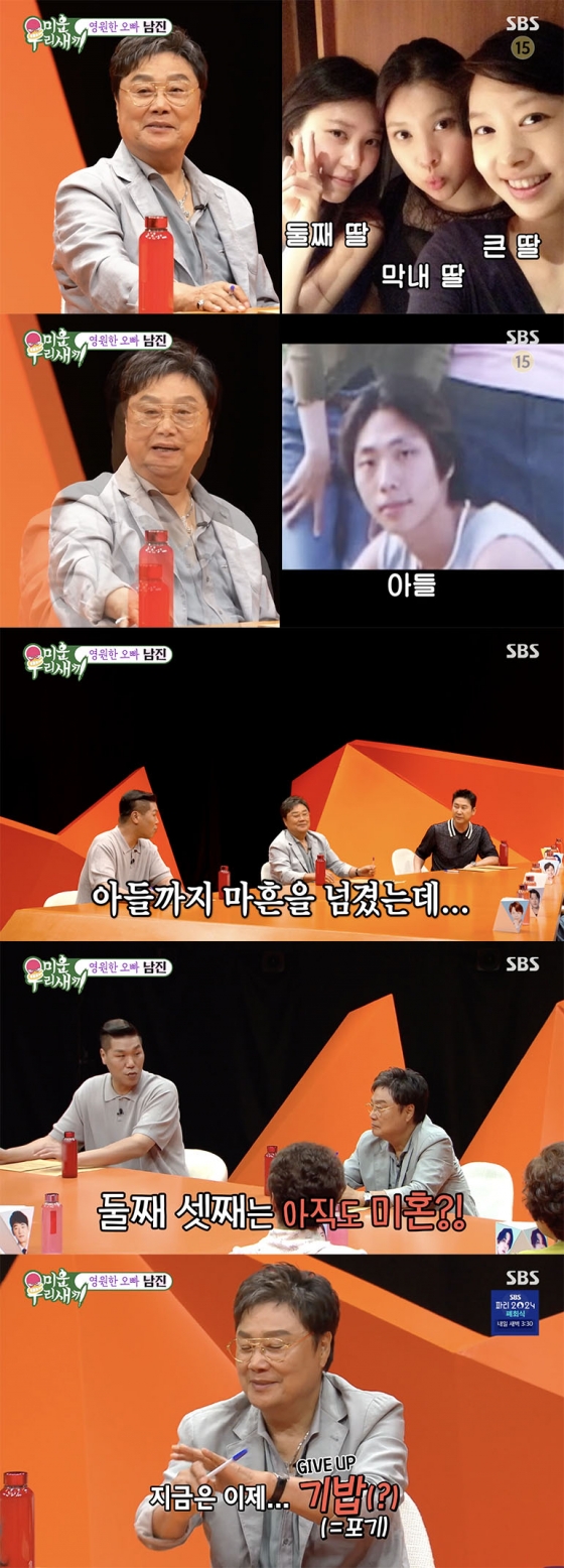 한편, 남진은 현재 첫째 딸이 44세, 둘째 딸이 43세, 셋째 딸이 42세 그리고 막내아들은 41세라고 밝혔다. 그러면서 첫째와 막내아들은 결혼했는데 둘째와 셋째는 아직 미혼이라고 전했다.