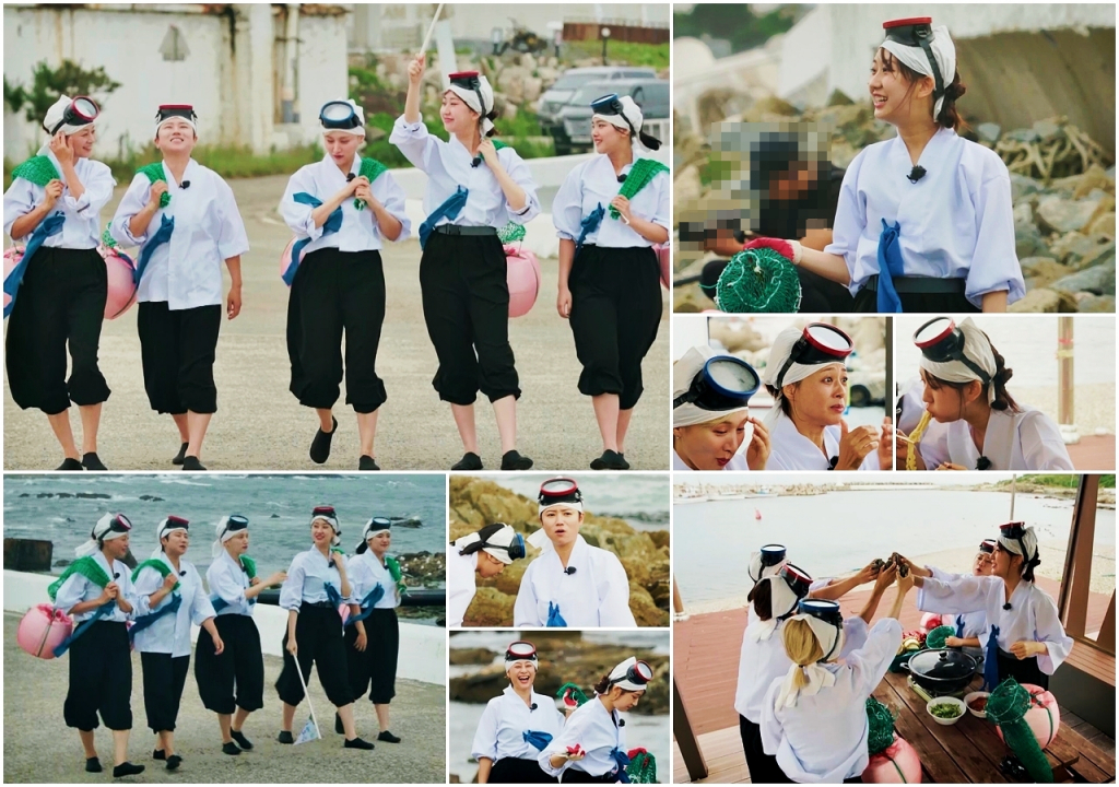 전유진을 필두로 한일 가수들이 머리엔 잠수경, 어깨엔 태왁까지 쓴 채 완벽한 전통 해녀복 차림으로 항구에 등장, 시선을 강탈한다. 5인방이 위풍당당한 포즈로 항구를 걷는 가운데 마이진은 "TV에서 확인해 봐, 우리 모습 골때리게 웃길걸?!"이라는 너스레를 떨어 현장을 웃음바다로 만든다.